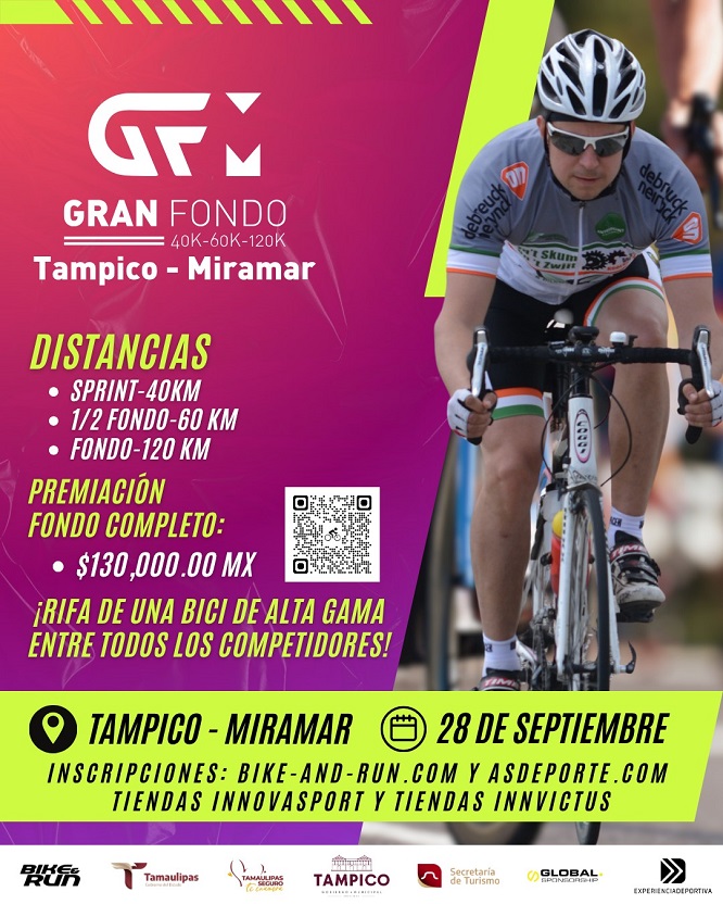 “El Gran Fondo Tampico 2025” se realizará el 28 de septiembre, y estimándose la participación de más de 600 ciclistas, en las diferentes categorías: sprint de 40 kilómetros, un medio fondo de 60 kilómetros y el gran fondo de 120 kilómetros.