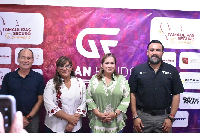 En conferencia de prensa, la secretaria de Turismo en San Luis Potosí, Yolanda Josefina Cepeda Echavarría acompañó a Hernández Rodríguez, al lado de la directora de Turismo de Tampico, Karime Cámara y del director general de Bike & Run, Francisco Reséndiz Guevara.