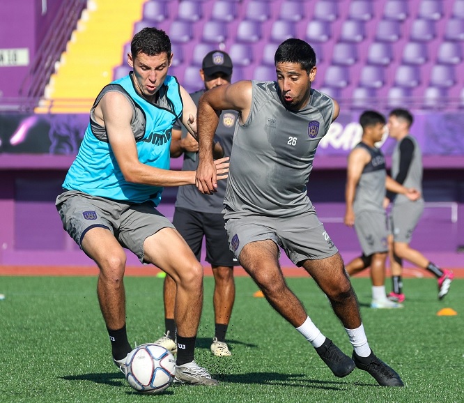 El equipo que dirige Marco Angulo tomó el control de la práctica e indicó que realizaran enfrentamientos individuales, en parejas y en tercias en distintas áreas del terreno de juego, para posteriormente dar pie a una dinámica de fondos.