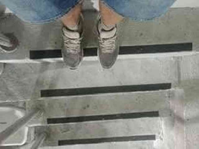 Dentro del estadio, usuarios captaron imágenes de los escalones, algunos de los cuales son más angostos que la medida estándar de 25 centímetros, además de un pasamanos que no sigue la línea de la escalinata. En el terreno de juego, asistentes tomaron fotografías que mostraban baches y deformaciones que podrían desviar un tiro a ras de suelo, defectos que fueron visibles desde las gradas.