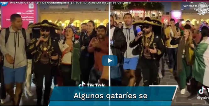 Y es que con otro grupo de mexicanos decidieron cantar la canción de ‘La Guadalupana’ mientras caminan por uno de los centros turísticos de Qatar. El ánimo con el que lo hacen es tan contagioso que hasta algunos qataríes se unen aplaudiendo y muy emocionados.