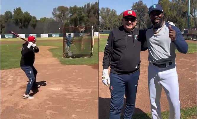 Por medio de un video que dio a conocer, a través de sus redes sociales, el titular del Ejecutivo se midió en el bat contra el pelotero de los Tampa Bay Rays.