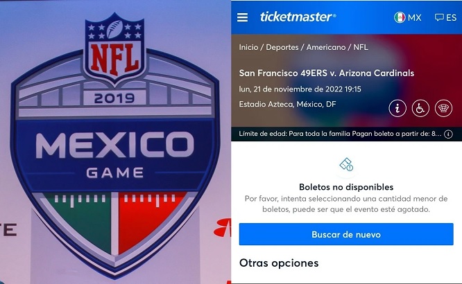 Los boletos para el partido de la NFL en México del próximo 21 de noviembre en el Estadio Azteca entre los 49ers de San Francisco y los Arizona Cardinals comenzaron a venderse este martes con la preventa Banorte; sin embargo apenas salieron y ya se encuentran agotados.