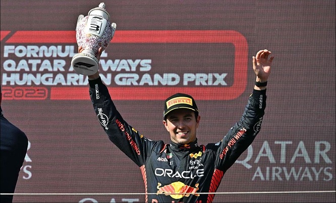 Pero con buena estrategia, inteligencia y control absoluto de sus planes, el tapatío supo aprovechar ciertos momentos y sacarle el máximo a su RB19, para por fin conocer el podio de Hungría, en el que nunca había estado y que compartió con el absoluto ganador Max Verstappen, quien tomó la punta ante el error de Hamilton desde el arranque y no la soltó. El segundo puesto fue para Lando Norris, quien ratifica el buen momento de su equipo.