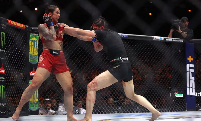 Un choque de cabezas cambió los planes y el rumbo de Irene Aldana en su presentación en la noche mexicana de la UFC en septiembre pasado en Las Vegas. La sinaloense se medía entonces a la brasileña Norma Dumont, pero en los segundos finales del segundo round, una brutal cortada en la frente le originó a la tricolor una hemorragia, que confiesa “no la dejaba ver”.