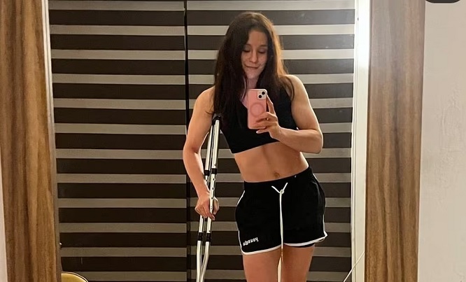 “Me rompí la patita entrenando, pero estoy bien. Todo sana, tiempo al tiempo”, escribió en su cuenta de Instagram