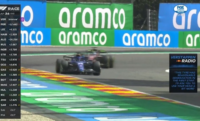 Max Verstappen ganó tranquilamente el Gran Premio de Bélgica, con 20 segundos de ventaja sobre Checo Pérez, su compañero de Red Bull, que se colocó en el segundo lugar del podio. El actual campeón del mundo, fue tan dominante que en un momento de la carrera se dio el lujo de ponerse a «pelear» con el equipo de ingenieros de la escudería.