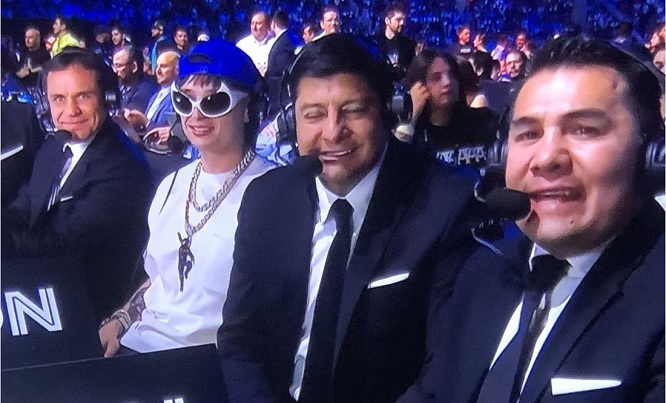 El interprete de ‘Ella baila sola’, fue invitado como comentarista de la cadena TUDN, quien lo tuvo en sus micrófonos desde la previa al combate.