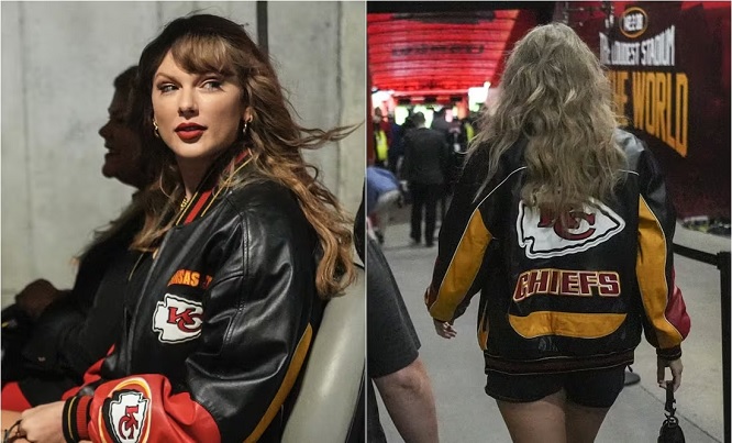 Swift, quien este domingo terminó su gira por Estados Unidos en la ciudad de Indianápolis, de inmediato se robó las miradas al presumir en su atuendo una chamarra espectacular, que de inmediato se volvió tendencia en redes sociales.