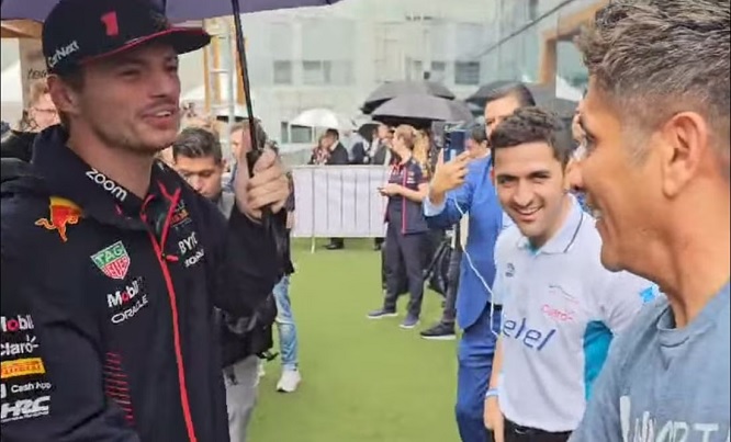 Campos saludó al de Países Bajos y le dijo que era un placer estar con él en dicho evento; durante el partido hubo buenos ánimos e incluso el Brody le prestó sus guantes para que Max atajara un penalti a Checo Pérez.
