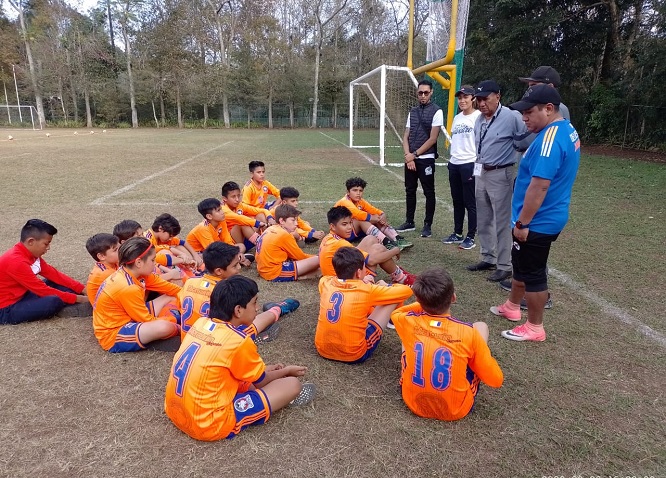 “Para mí es un reto trabajar con ustedes”, dijo el profesor Celis Díaz al poner en marcha su programa “Técnica de la carrera” a chicos de la escuela de futbol Delfines de Xalapa.