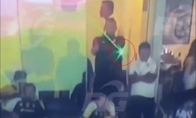 El video, publicado por RG La Deportiva, muestra el momento en que el guardameta, que no tiene actividad por lesión, aparentemente enciende la intensa luz verde.