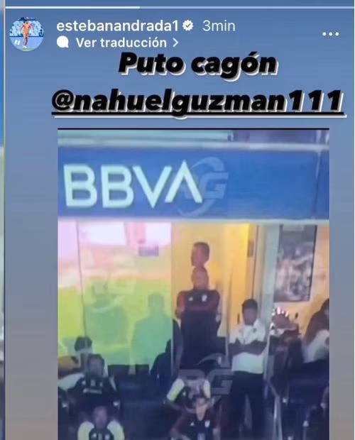 Aunque la historia ya fue eliminada, las redes sociales guardaron la evidencia de esa ‘Storie’ en la que Andrada escribió: «Puto cagón Nahuel Guzmán», acompañado de la imagen del ‘Patón‘.