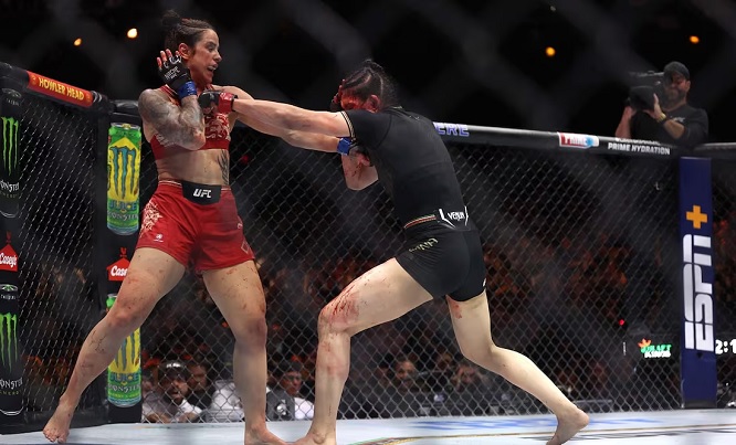 La sinaloense Irena Alda también perdió, por decisión unánime (30-27, 30-27, 30-27), con la brasileña Norma Dumont, pero el octágono se pintó de rojo para mala fortuna de la mexicana que terminó con su rostro severamente dañado y bañada en sangre por una profunda herida.