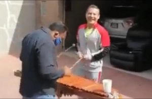Julio César Chávez se divierte y disfruta del día con una marimba
