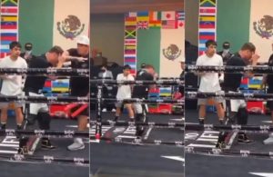 El pugilista mexicano se da el tiempo de entrenarlo, pese a tener la pelea ante Caleb Plant...