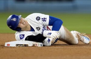El japonés se lesionó el hombro al deslizarse en un intento de robo en la segunda base...