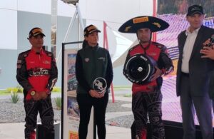Ricardo Cordero recibe la llanta por ser el más rápido de la Qualy de la Carrera Panamericana 2024
