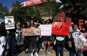 Plaza de Toros México recibe manifestación nocturna contra la Tauromaquia