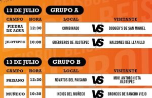 Rol de juegos Liga Municipal de Béisbol Emiliano Zapata