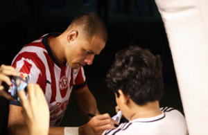 Chicharito Hernández recibe duro golpe en el rostro en amistoso contra el Atlante y abandona el campo de juego; así fue la falta