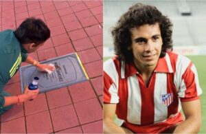 Aficionado mexicano limpia la placa de Hugo Sánchez en el Atlético de Madrid tras vandalismo