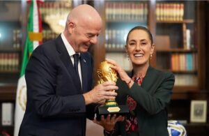 Claudia Sheinbaum recibe la Copa del Mundo en manos de Gianni Infantino; el presidente de la FIFA visitó Palacio Nacional