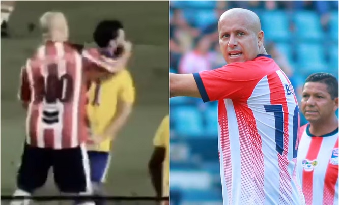 El exjugador rojiblanco, quien portó en el duelo su tradicional número 100 en la espalda, se enganchó en una discusión con Daniel ‘Chepe’ Guerrero, con quien tuvo una serie de empujones y a quien terminó lanzándole un puñetazo en el rostro.