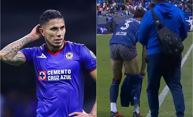 Fue exactamente al minuto treinta del primer tiempo, que Salcedo se acercó a la línea de banda y ante las cámaras y fanáticos se quitó la prenda.