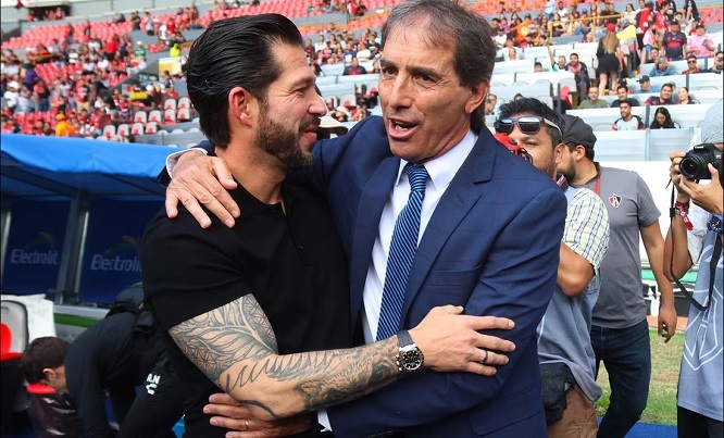 Guillermo Almada sale molesto después del partido ante Atlas y Benjamín Mora contento
