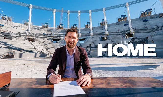 Un ‘He’s Home’ en la cuenta oficial de X acompañado por un video de 64 segundos en el que se ve a Messi, vestido con traje azul oscuro, firmar el nuevo vínculo en el centro del que será el Freedom Park, el nuevo estadio del club de Florida en la zona del aeropuerto de Miami.
