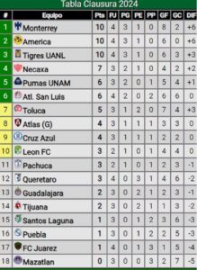 En la cima, por ahora, están tres de los principales candidatos al título, como lo son Monterrey, América y Tigres, todos con 10 puntos.