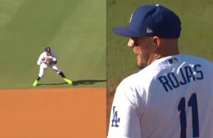 Beisbolista de Dodgers interrumpe entrevista en el campo, hace espectacular jugada y luego se disculpa