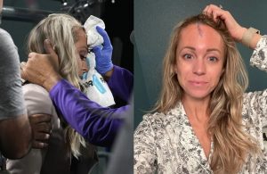Kelsey Wingert, reportera de los Colorado Rockies, recibió un brutal pelotazo de foul; recibió suturas, pero también...