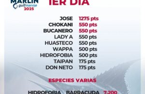 Embarcación JOSE encabeza tabla al cierre de báscula en Torneo Internacional de Marlín “gulfmarine 2025”
